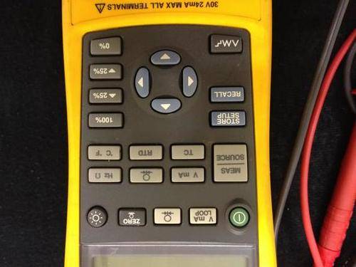 The Fluke 725 Multifunction Process Calibrator is equipped to test and calibrate almost any process parameter. Measures and source mA, volts, temperature (RTDs and thermocouples), frequency, ohms, and pressure, using optional pressure modules. It also calibrates transmitters.