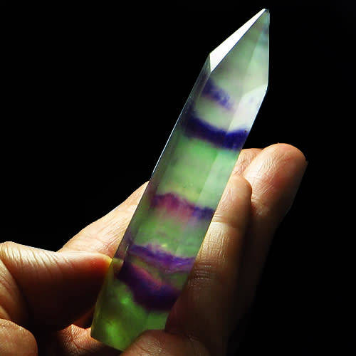 A Top Quality (AAA+++) Green, Purple and white Fluorite wand. Better than the photo.