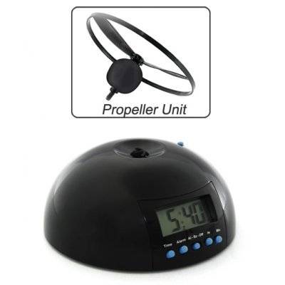The "Flying Alarm Clock" includes a clear 1.8 inch display and is extremely easy to use. A few simple clicks is all it takes to set the time, a few more to set the alarm, and finally just 1 push to install the propeller-driven key. The "Flying Alarm Clock" can be useful for anyone and is an especially great present for parents to give their terrible-to-wake teens - in a "tough love" kind of a way.