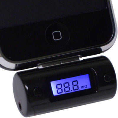 * Transmits stereo quality sound from your iPod or iPhone to your car FM radio.