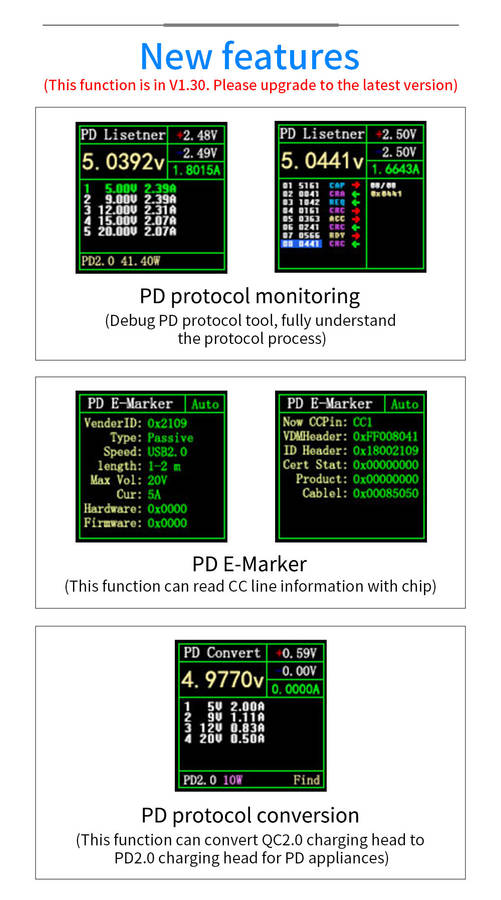 --PD monitoring function; PD E-Marker function; QC2.0->PD protocol conversion function.
