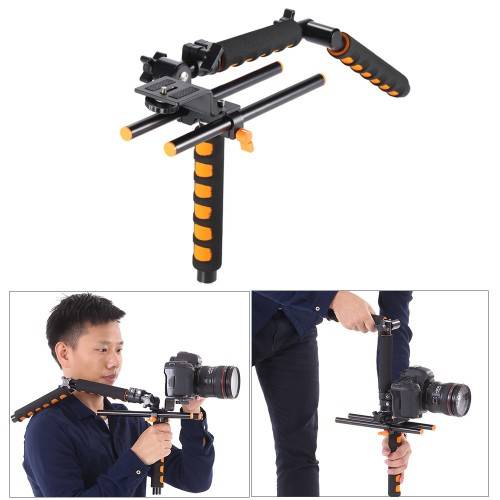 Foldable Adjustable Film Making Support Rig Shoulder Mount System Stabilizer Aluminum Alloy with 15mm Rods Handle Grip for Canon Nikon Sony DSLR Camera Camcorder