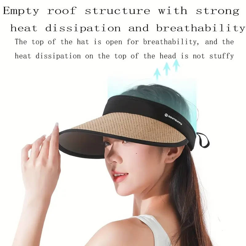 New Vision Foldable Sun Hat - Wide Brim Natural Straw Breathable Adjustable Drawstring Hat, Perfect for Outdoor Beach Hiking, a Lightweight Unisex Hat for All Seasons, Perfect for Hiking and Beaches. Open-Brim Design, Secure Fit, Durable