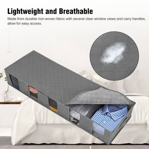 Foldable Under Bed Storage Bag Under Bed Clothes Container Grey Dustproof Storage Box