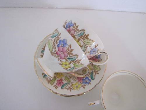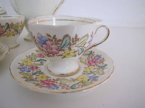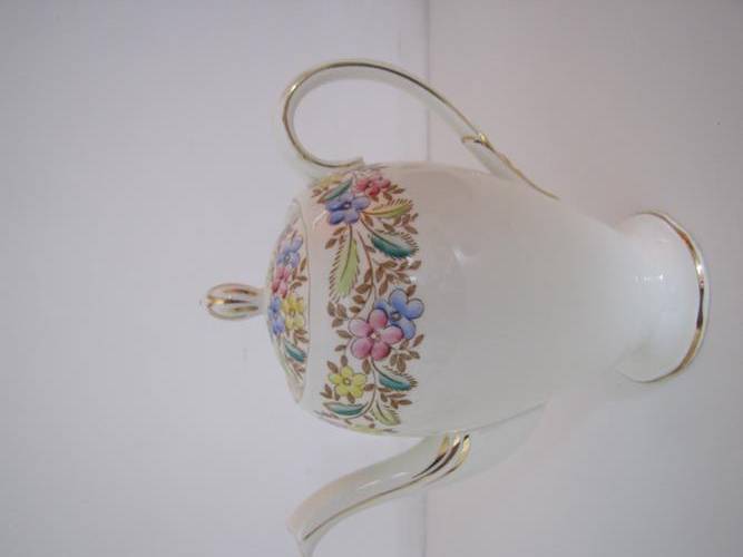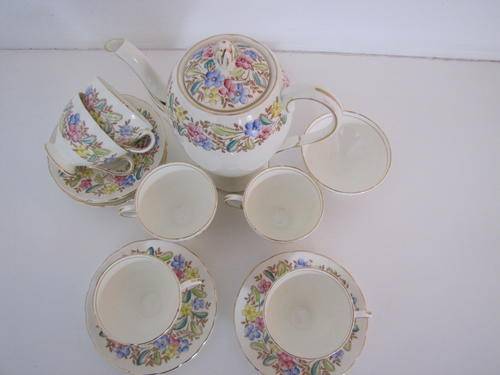 Beautiful delicate Coffee Set in excellent condition. Scalloped edges.Cups x 6 (6cm in height and 7.5cm in width), Saucers x 6 (12cm), sugar bowl x 1 (5cm in height and 9cm in width) and Coffee Pot (19cm in height and 19cm from spout to handle). Postage & packaging R80
