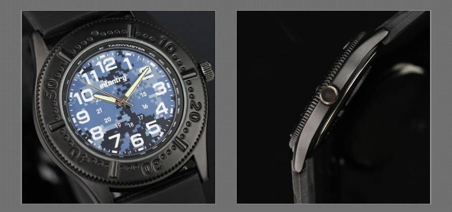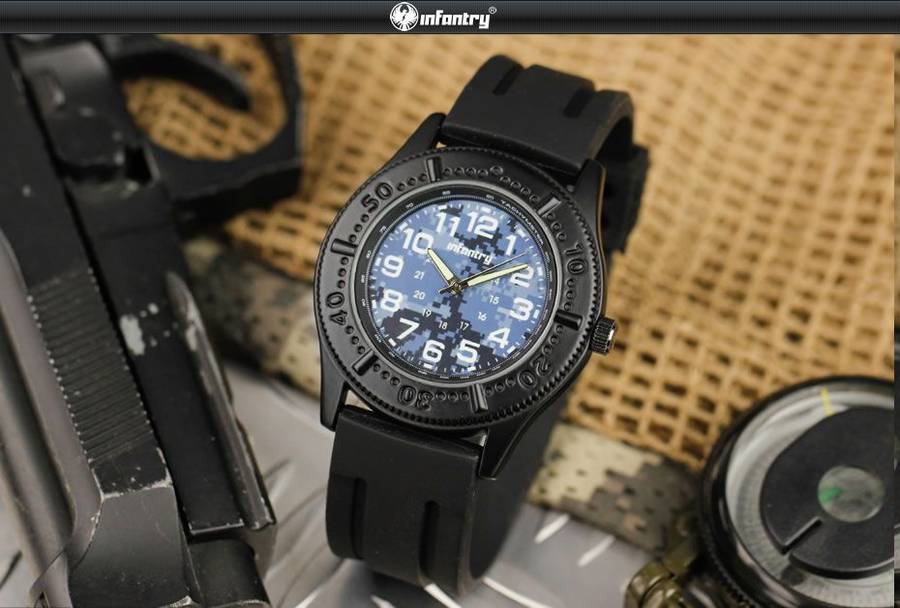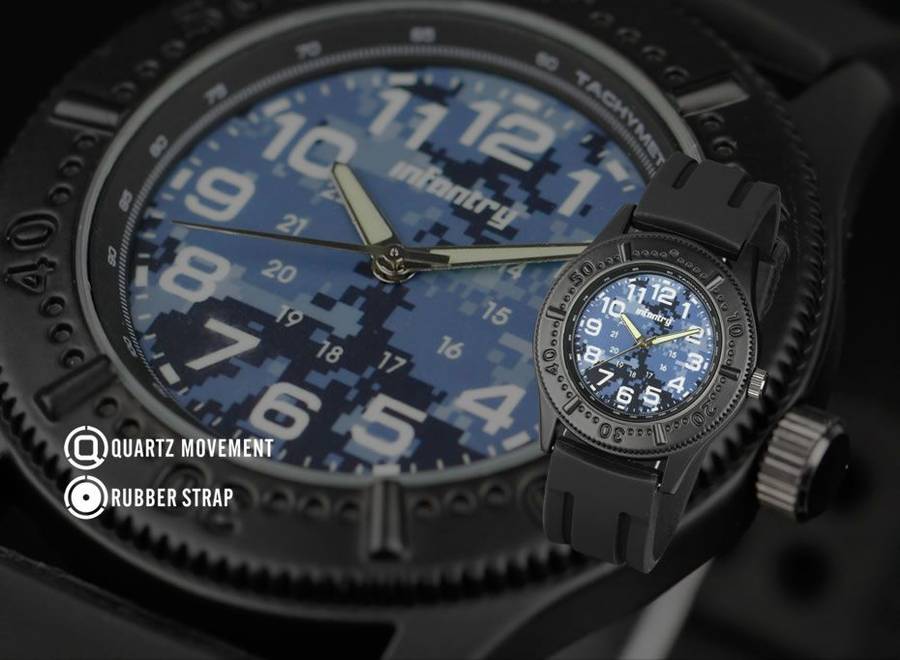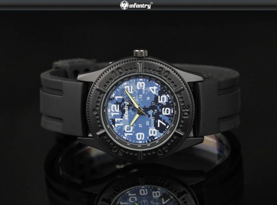 Fom UK***ORIGINAL INFANTRY LUME CAMO BLUE NEW QUARTZ ANALOG SPORTS MEN WRIST WATCH RUBBER