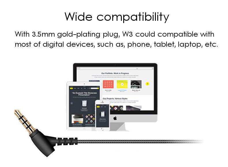 5. With 3.5mm plug, W3 compatible with most of digital devices, such as, phone, tablet, etc.