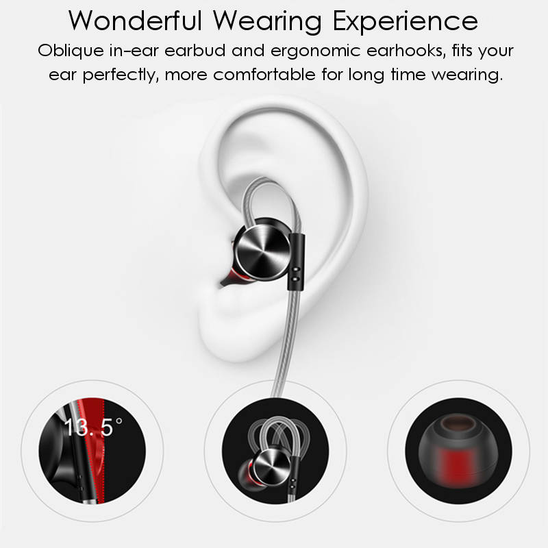 4. Oblique in-ear earbud and ergonomic earhooks, fits your ear perfectly, more comfortable.