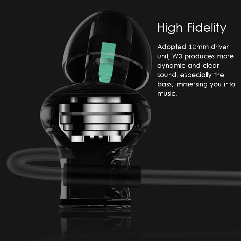 1. Adopted 12mm driver unit, W3 produces more dynamic and clear sound, especially tha bass, immersing you into music.