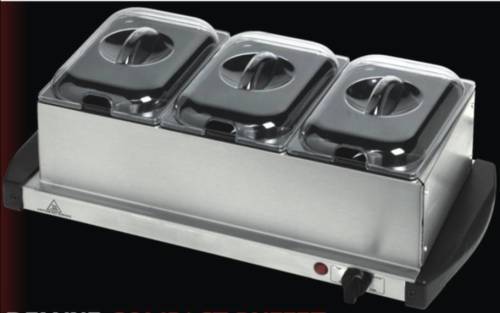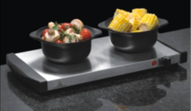 Features: o 3 separate pans with clear lids o Base doubles as a warming tray o Cool touch handles for convenient serving o Temperature control (low / mid / high) o Power ON and READY indicator lights o Stainless Steel & black finish