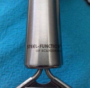 Made by Steel Function of Scandinavia - Its a well designed quality item. It has a lip which lifts the grating edge up off the surfact, enabling one to easily grate.
