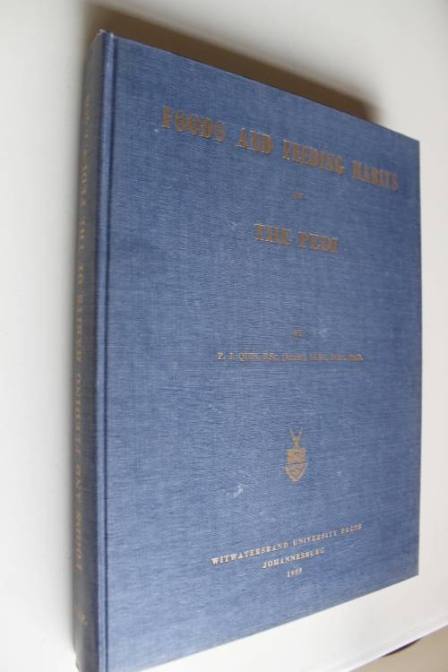 Witwatersrand University Press, 1959, hardcover, light blue cloth boards with gilt lettering,census of African labour community of the Zebediela Estates, Northern Transvaal, ethnological and historical background of the Pedi, Pedi agriculture, crop plants of the Pedi, edible wild plants, wild fruits, insects, fauna, fire , feeding habits , classification of Pedi foods & others, bibliography, 134 photographic plates, 278 pages excluding prelims. and plates, 215 x 285mm, condition: very good.