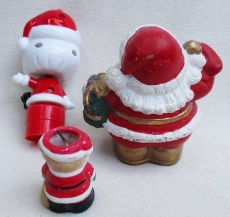 Hard plastic bobble head - 10cm. Tiny ceramic candle - 4cm. Painted hard plastic?ceramic? Santa - 8cm - he has some paint loss here and there