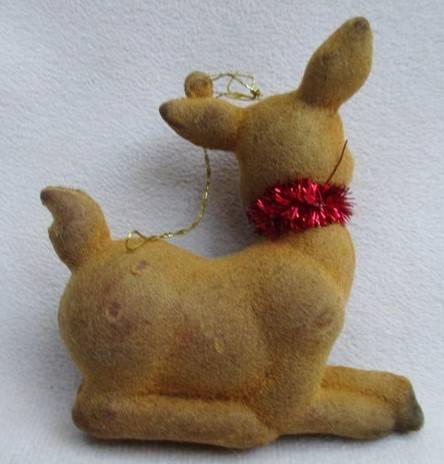 Vintage flocked Bambi tree ornament - 9.5cm