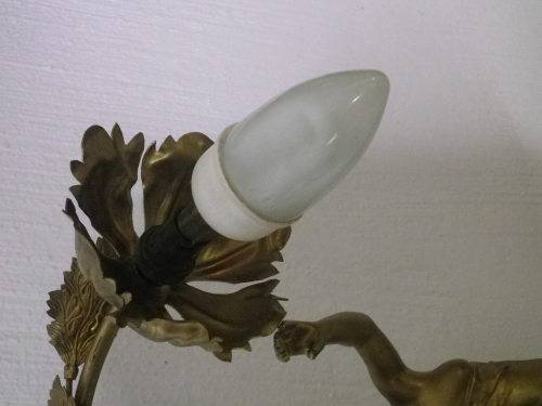 46cm tall. Marked 'Made in France" with makers name- perhaps Villunus? Good condition- some wear (not noticable). Work perfectly. Include globes (one brighter than the other)