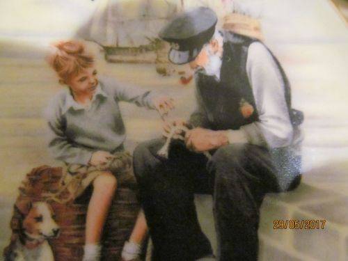 3.RARE AND HIGHLY COLLECTABLE COALPORT DISH WITH IMAGE OF OLD SAILOR, BOY AND A DOG, HANDPAINTED