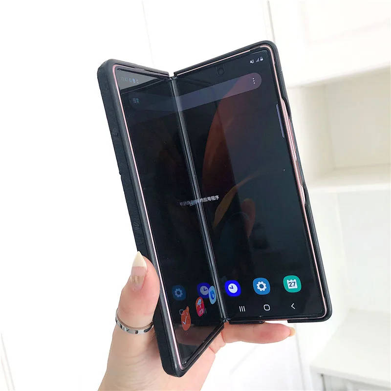 For Galaxy Z Fold 2 Case for Galaxy Z Fold2 5G front and back covered with Luxury leather