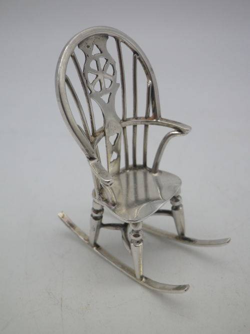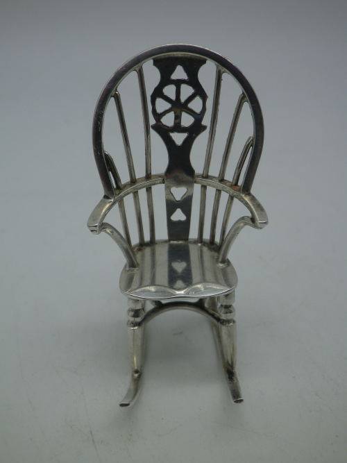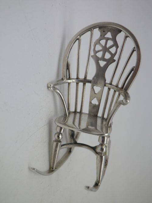 Rare & Fab Miniature HALLMARKED SILVER ROCKING CHAIR