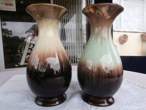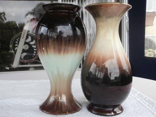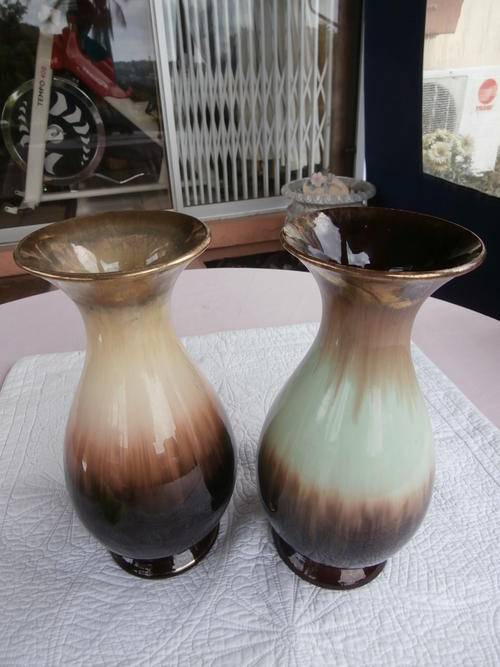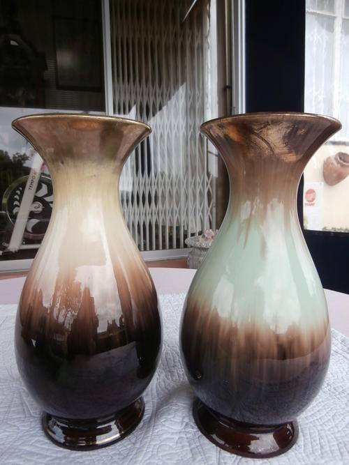 TWO X BEAUTIFUL JASBA CERAMIC VASES 28cm MADE IN GERMANY IN THE EARLY 50'S BOTH IN GOOD CONDITION THE PRICE IS FOR BOTH. I ALSO HAVE A STUNNING MATCHING JUG THAT YOU CAN HAVE FOR R150 WHEN BUYING THE TWO LARGE VASES ,SEE LAST PICS.
