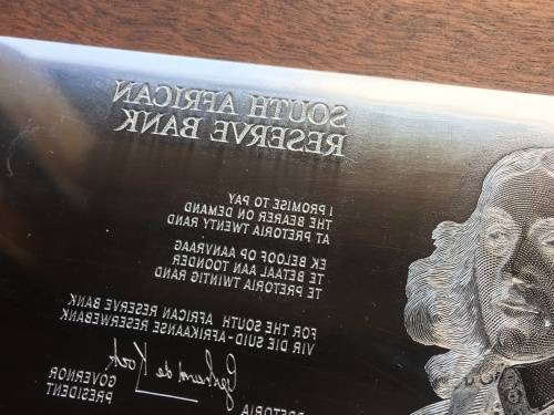 RARE** Original South Africa - G.de Kock "R20 Twenty Rand Note Printing Plate** Front Plate