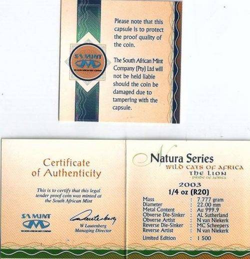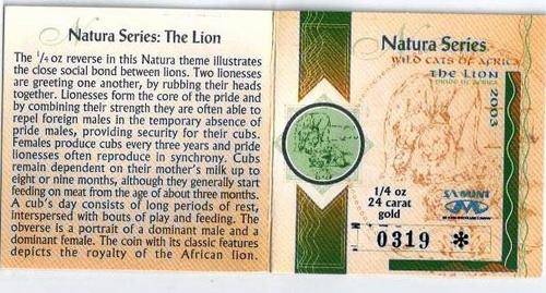 ONE PROOF QUARTER OUNCE (1/4) 2003 NATURA GOLD