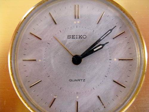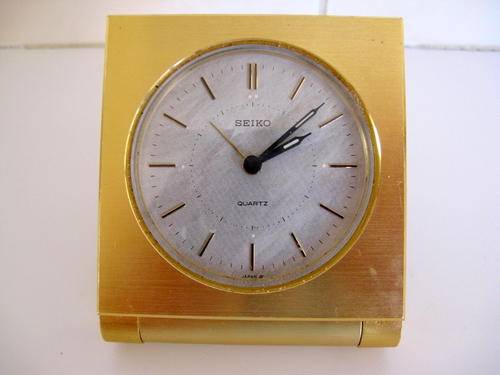 NEITHER OF THESE CLOCKS IS WORKING.The one below is a solid brass vintage clock and the seiko is a travel clock.