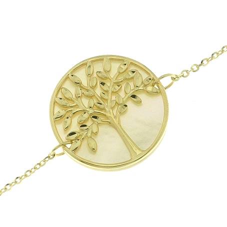 Tree of life on mother of pearl, on anchor links, all soldered, soldered end rings & a bolt ring, 19cm long.