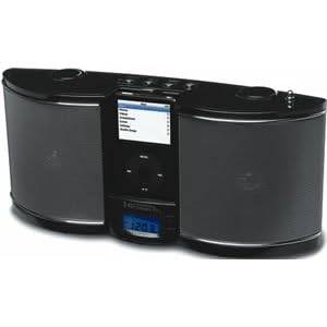 Emerson iP100 iTone Portable Sound System come with pair of wide-ranging 3-inch speakers with 2 Watts RMS per channel and features dynamic bass boost system. It’s all in one AM/FM stereo radio tuner, digital alarm clock and iPod docking station.