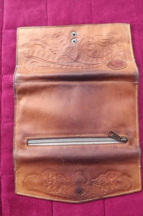 Force Ten Tan Colour Genuine Leather Purse - 11.5x18.5cm - inside as new - outside used cond. XXX