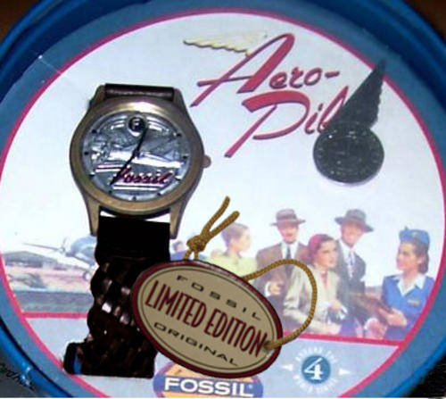 IT COMES WITH A FOSSIL FLIGHT CREW LAPEL PIN IN AN EXCLUSIVE METAL FOSSIL COLLECTORS TIN IN THE ORIGINAL BOX