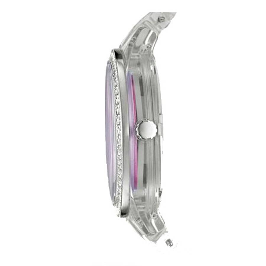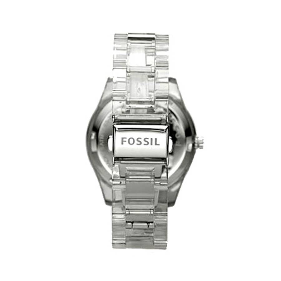 Fossil Boyfriend Women's ES2604 Clear Plastic Bracelet Pink Glitz Analog Dial Multifunction Watch