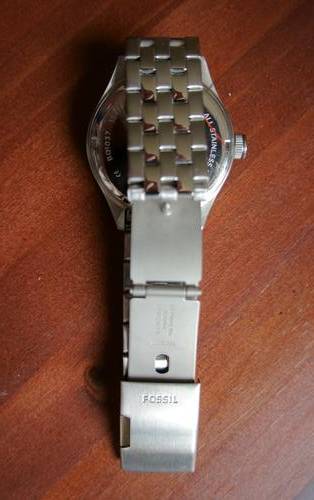 Brand, Seller, or Collection Name Fossil Model Number BQ1037 Part Number BQ1037 Item Shape round Dial window material type Mineral Display Type analog Clasp Type fold-over-clasp Case material stainless-steel Case diameter 46 millimeters Case Thickness 13 millimeters Band Material stainless-steel-plated Band length mens-standard Band width 22 millimeters Band Colour Silver Dial colour black Bezel function stationary Special features measures-seconds, luminous Movement japanese-quartz Water resistant depth 50 meters