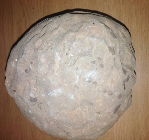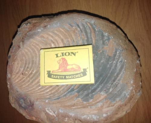 This fossil clam weighs about 4kg. The measurements of the clam imprint is about 11cm x 6cm and the diameter of the rock 47cm.