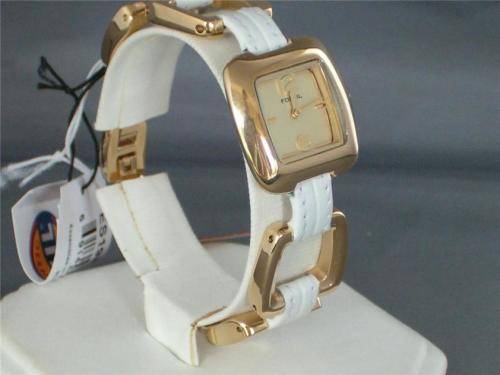 Fossil ES1980 Ladies White Leather Link Bracelet Watch With Gold Dial