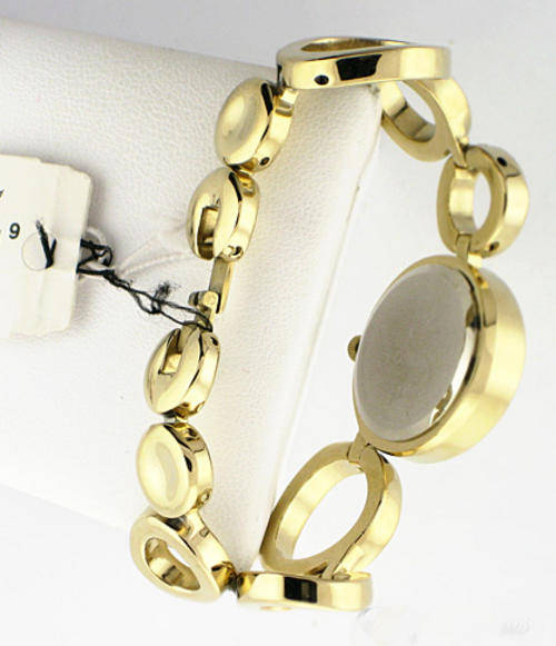 Polished stainless steel Gold-tone circle open and off-link bracelet with a jewelry clasp