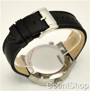 Make a statement with this oversized, stainless steel watch. The black dial features wood accents and two functional sub-dials. The black genuine leather strap has vintage-inspired contrast stitching and gives this watch a sporty look you'll love.
