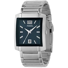 Quartz movement, Dress watch, Silver-tone hands and indices, Silver-tone 12 o'clock, Analog date display, Blue crystal bezel, Brushed stainless steel bezel edge, Polished stainless steel crown and caseback, 50 meters/165 feet water resistant