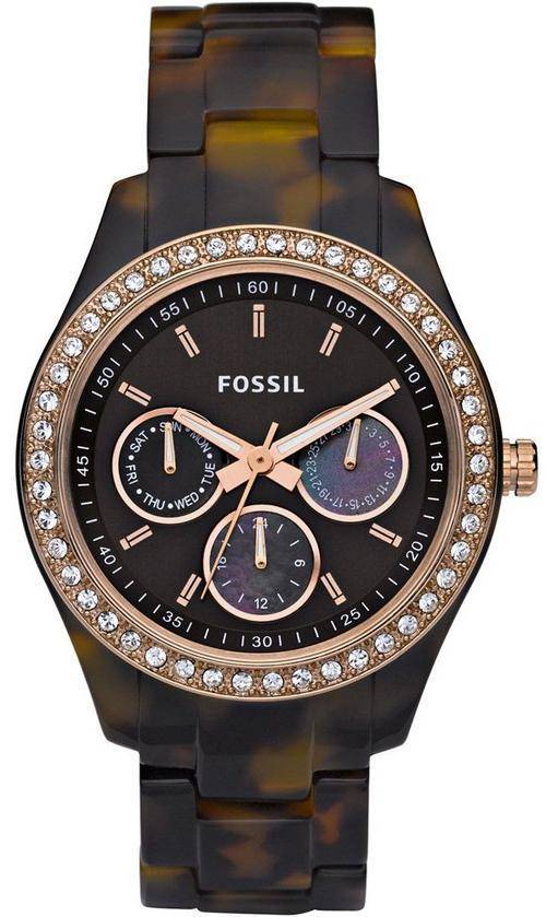 FOSSIL STELLA CRYSTAL TORTOISE RESIN CHRONOGRAPH LADIES WATCH