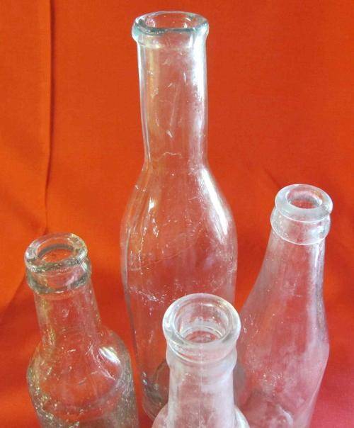 Four pressed glass bottles by various makers. All in good condition and very collectable. These four bottles ship as one item.