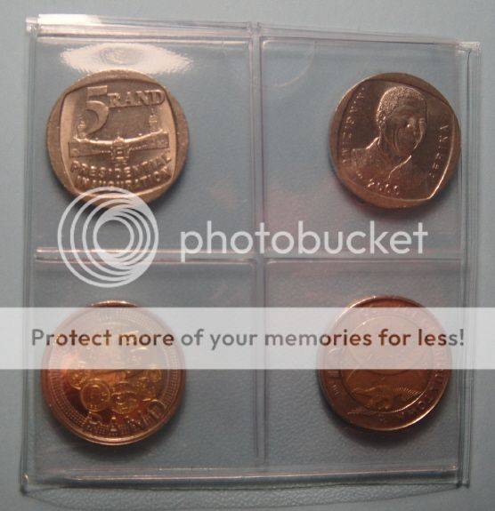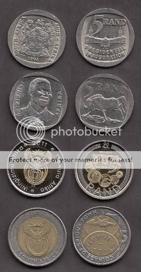 The coins are as follows - 1995 Inauguration, 2000 Mandela, 2011 Reserve Bank and 2015 Griqua Town.