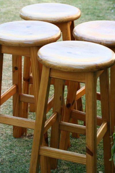 FOUR VERY NICE BAR STOOLS. THEY ARE IN VERY GOOD CONDITION AND THE LEGS ARE STILL VERY STABLE. PLEASE VIEW THE PICS CAREFULLY FOR MORE DETAIL AND CONDITION. POSTAGE WILL NOT BE POSSIBLE. PLEASE COLLECT IN BOKSBURG.