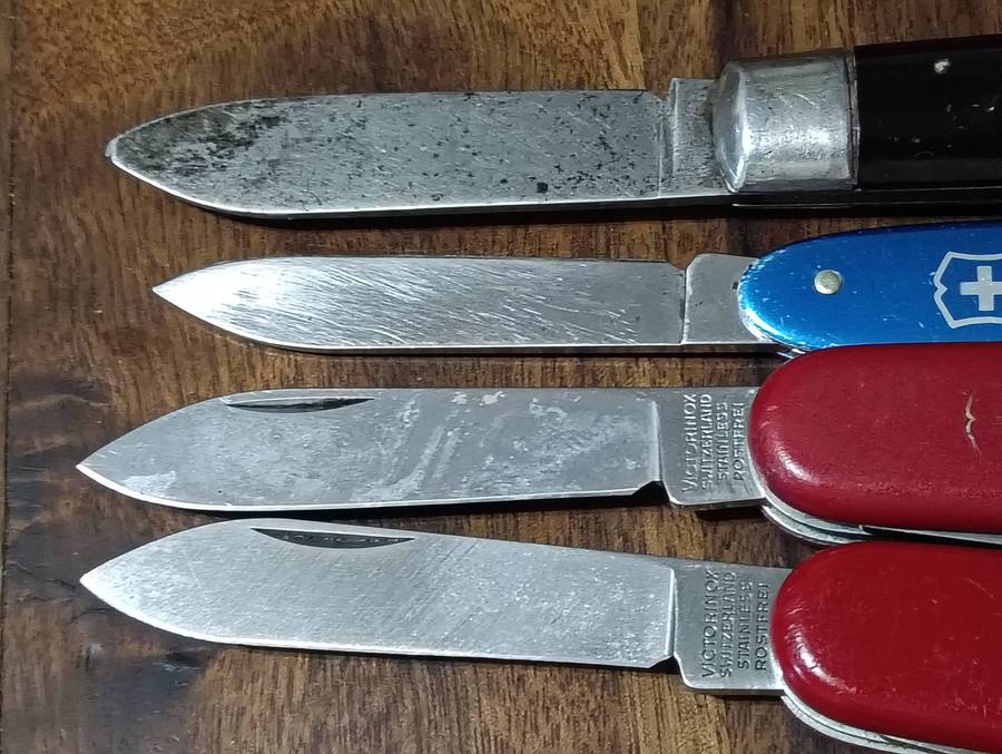 THESE KNIVES EACH HAVE SOME HONEST WEAR ON THE BLADES.