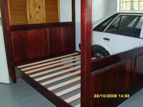 You are buying the 4 poster bed only . This queen 4 poster bed is made of 100% saligna wood . NO other man made material like pressed wood .laminated board , chipboard or particle board is used anywhere . Item can be stained to the color of your choice . You supply the stain or stain can be purchased fm our supplier . Should you require us to purchase the stain fm our supplier then you must supply the correct color required . Please take into account that stain looks different on various wood types . We will NOT be responsible after correct color is applied on any item . Should you require the stain to be purchased by us then the cost will be for your account .