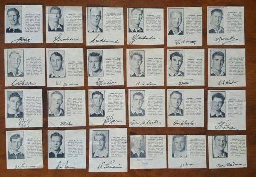 Below : Pictures, profiles and printed autographs of 24 All Black rugby players who toured South Africa in 1960 (each about 70mm x 70mm).