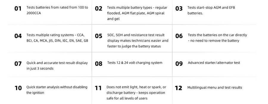Foxwell BT-715 Battery Analyzer Features and Benefits:
