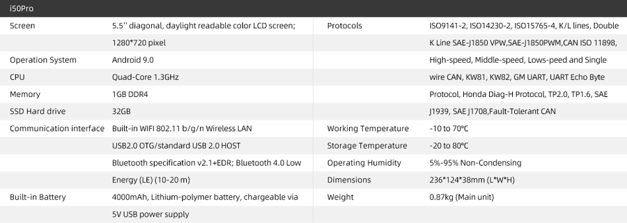 Foxwell i50 Pro is newly developed diagnostic scanner with Andorid 9.0 operating system. It offers technicians and enthusiasts an easy and affordable solution to pinpoint troubles of all electronic modules on major American, Asian and European makes. Besides, it can support the most common required service functions including Oil Reset, EPB, TPS, SAS, TPMS, DPF, Injector and ABS Bleeding etc.