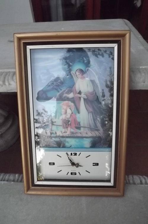 Framed Clock with 2 small children overseen by an Angle - 51.5x34cm - not working