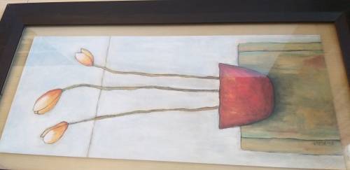 Framed floral print in a wooden frame. size: 51cm x 91cm