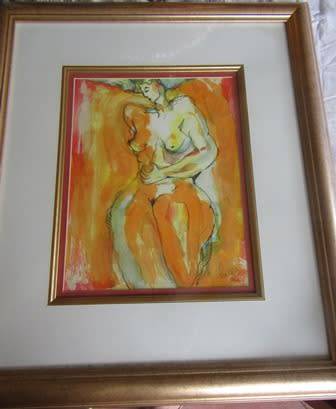 Framed Mixed Media Abstract Nude Size: 60cm x 50cm. Signature indistinct.