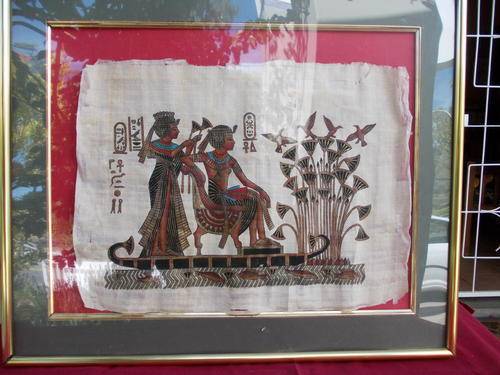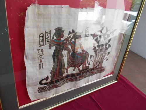 Framed Papyrus Picture of Egyptian Scene - size of picture itself - 43 x 34cm -  with frame 52 x 48cm